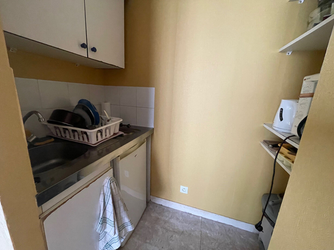 Dans un petit collectif, au 1er étage sur 2, ce T1bis est idéal pour un 1er investissement. Vendu avec une locataire en place depuis de nombreuses années, il se compose d’une entrée, d’un salon-séjour avec kitchenette, d’une chambre avec placard et d’une salle d’eau. Chauffage électrique et fenêtres PVC. (7.61 % honoraires TTC à la charge de l’acquéreur.)