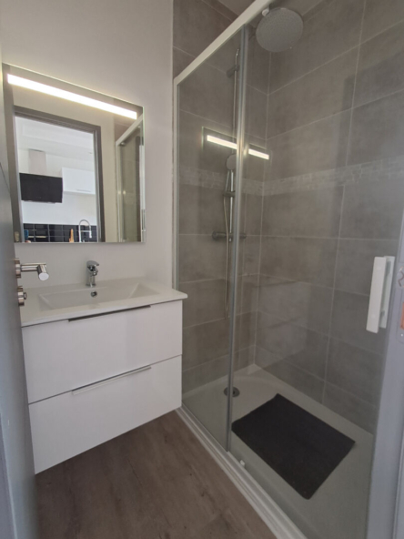 Très bel appartement T1bis meublé, situé au 3ème et dernier étage d’un petite copropriété, vous disposez d’une pièce de vie avec cuisine aménagée et équipée ( frigo, machine à laver, plaque, hotte et four à micro-ondes, une chambre avec placard, une salle d’eau et un WC séparé.