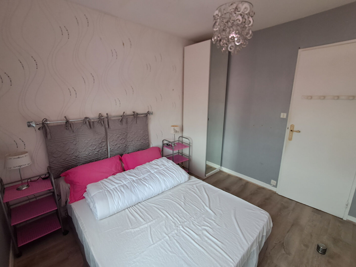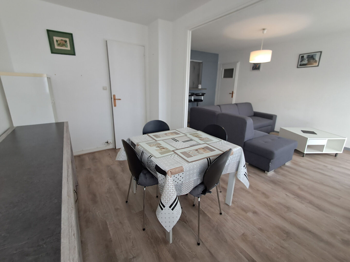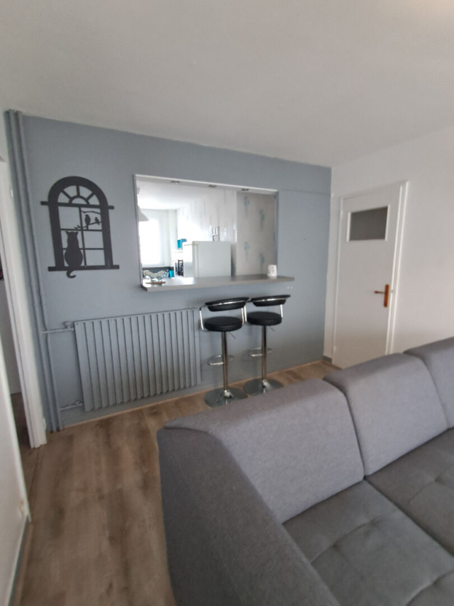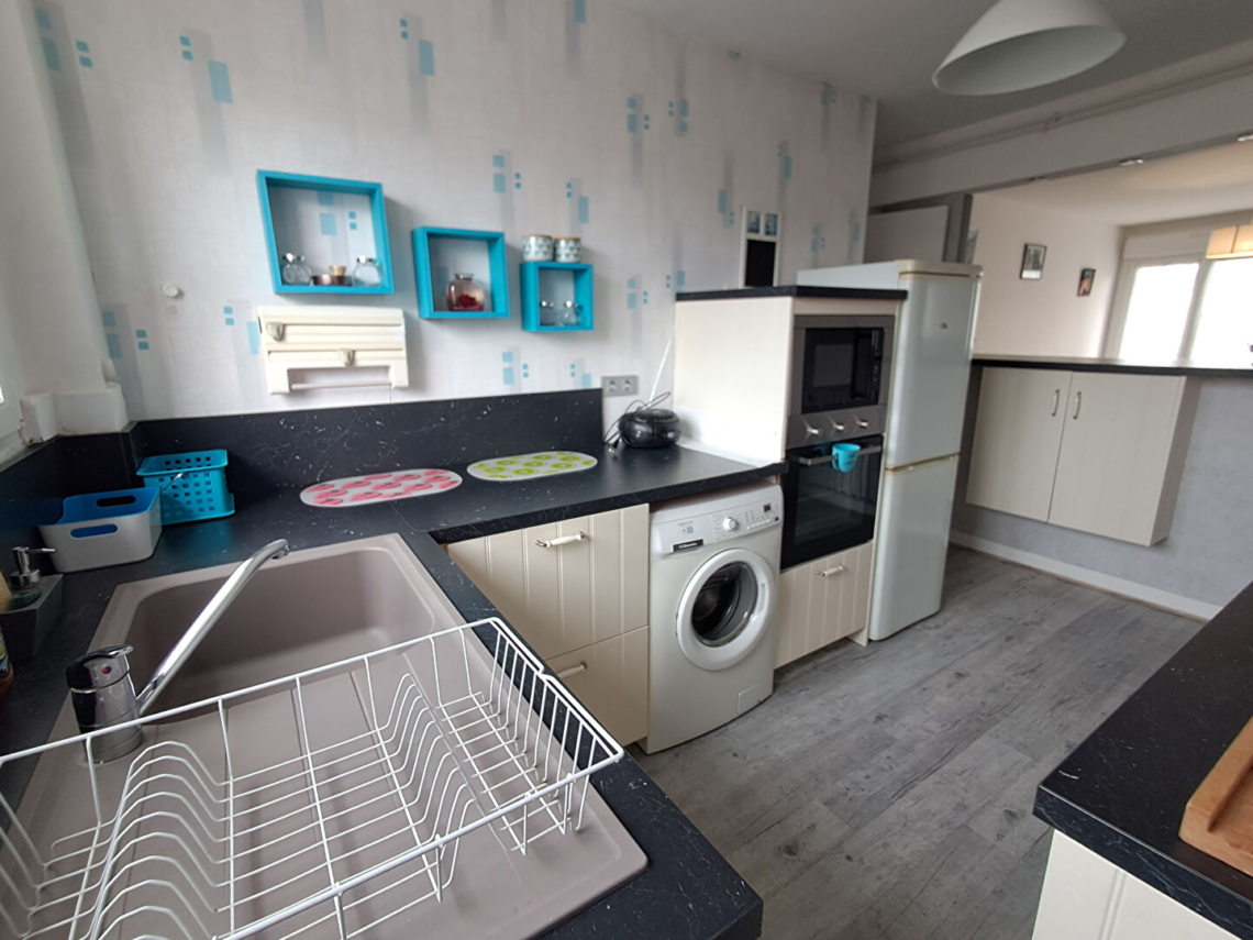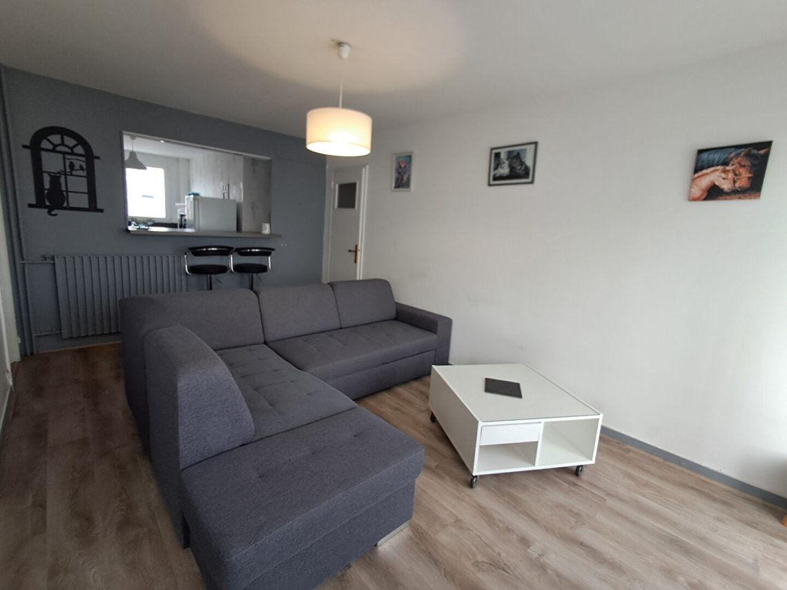 Cet appartement T3 meublé comprend une entrée, une pièce de vie de plus de 25m² donnant sur un petit balcon, une cuisine complètement aménagée équipée (four, plaques gaz, hotte, machine-à-laver, frigo, micro-ondes), deux chambres, une salle d’eau, wc séparés, cellier. Cave.