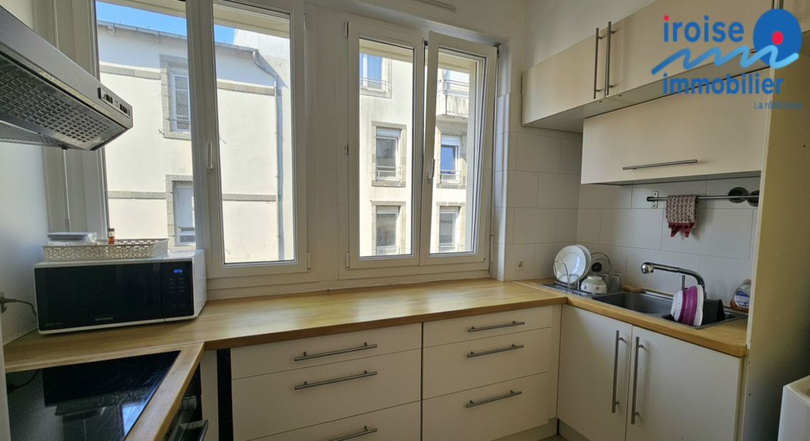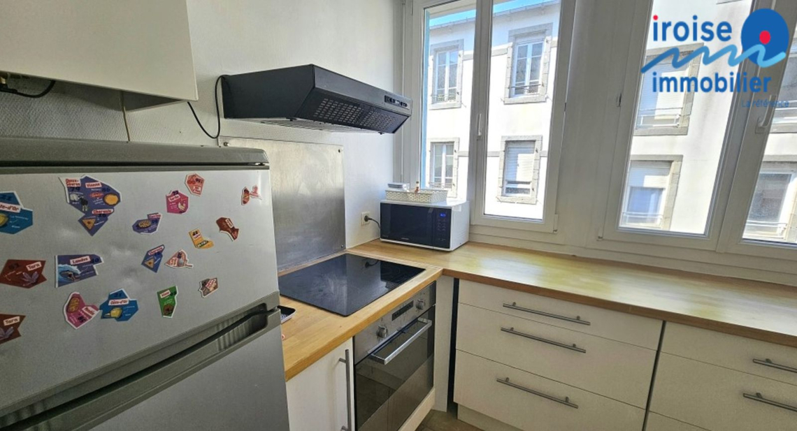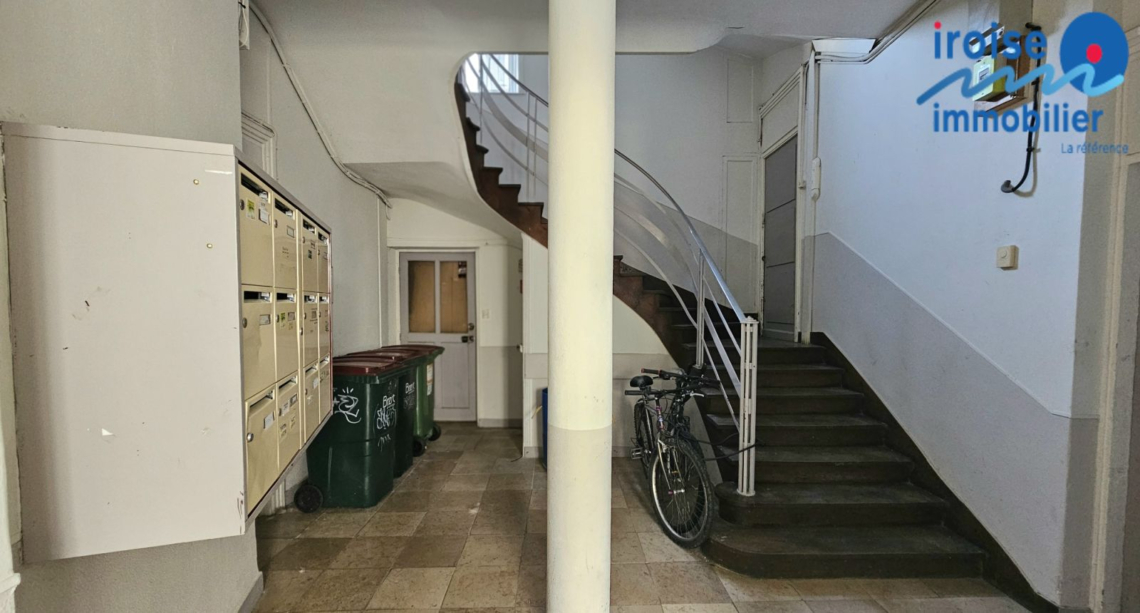 BREST HALLES SAINT MARTIN, idéalement placé au 1er étage d’un immeuble sécurisé au coeur du centre ville, à 400m du tram et 250m du bus, à 700m de la faculté de médecine.