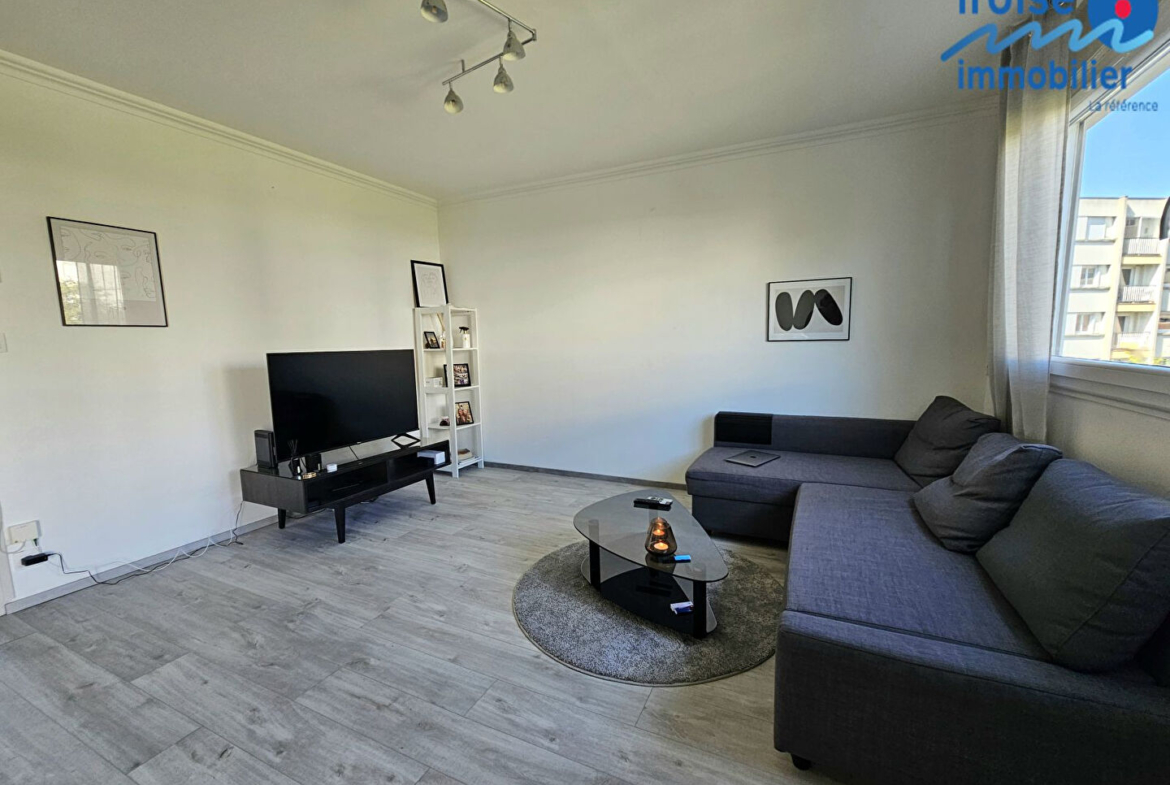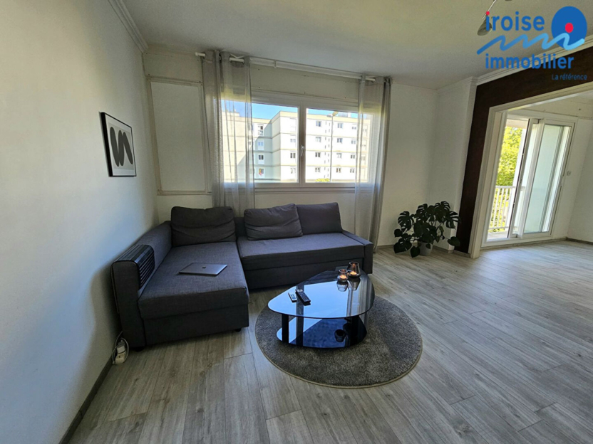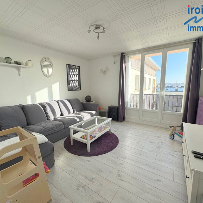 Cet appartement T4 traversant comprend une entrée, un double séjour de 27m² avec balcon exposé sud-est, une cuisine aménagée et équipée indépendante (four, plaques, hotte, micro-ondes, frigo, machine-à-laver à disposition), deux chambres, un dressing, une salle d’eau et un WC séparés.