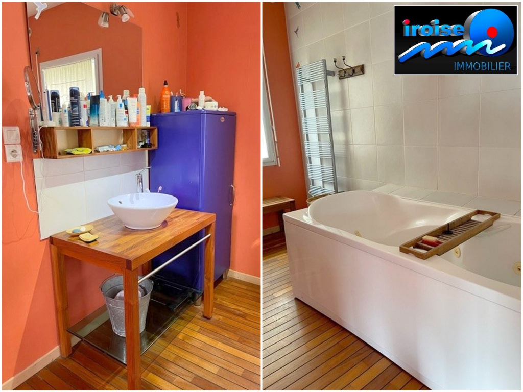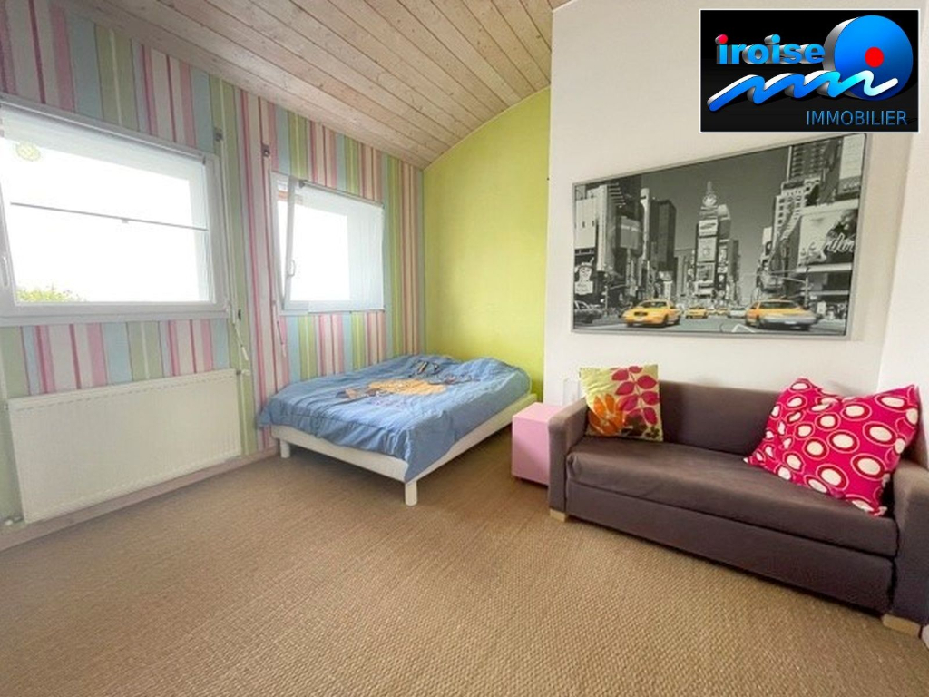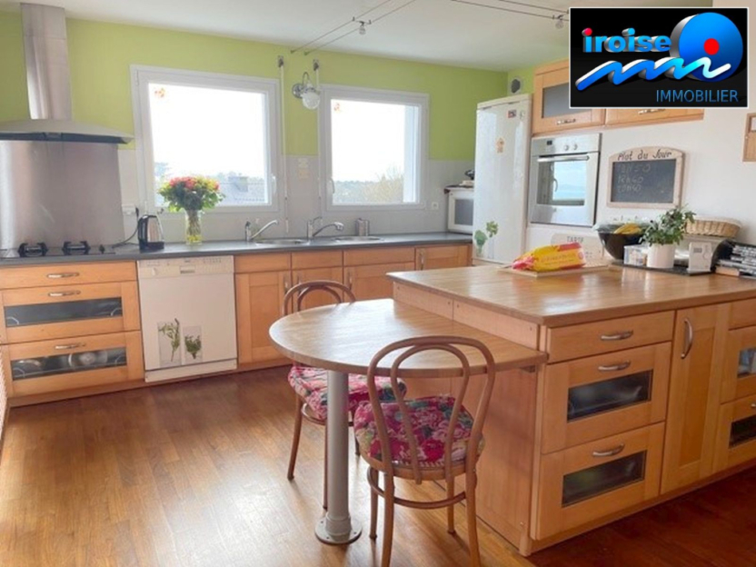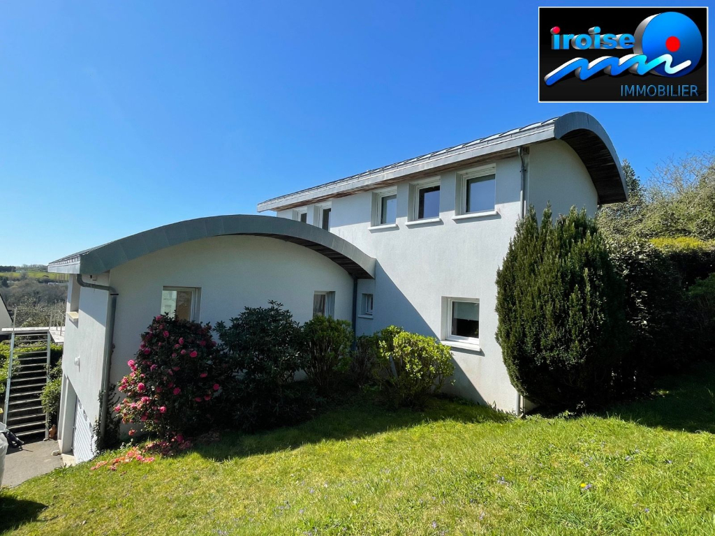 BREST SAINT PIERRE LE HILDY, jolie contemporaine T6 sur terrain de 867 m². Cette propriété se situe dans un quartier résidentiel à 2 pas de la mer. Très jolie vue sur rade. Elle se compose d’un hall d’entrée, ouvrant sur une vaste pièce vie de 60 m² avec cuisine aménagée et équipée, de 4 chambres dont une au rez de chaussée, d’une salle de bains et d’une salle d’eau, d’un dressing. Vaste sous-sol de 100 m². Grande terrasse offrant un joli panorama sur la rade. Terrain de 867 m². EXCLUSIVITE IROISE IMMOBILIER (5.00 % honoraires TTC à la charge de l’acquéreur.)