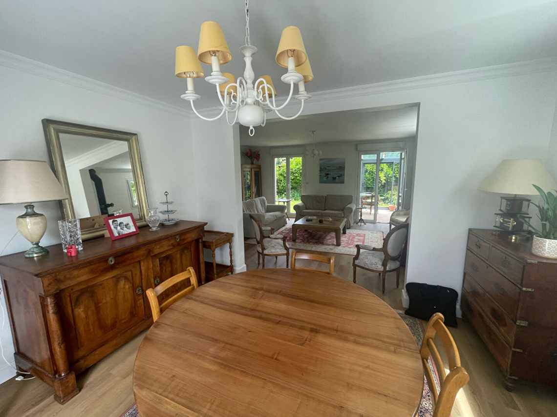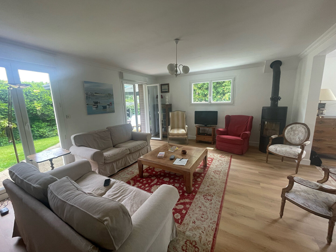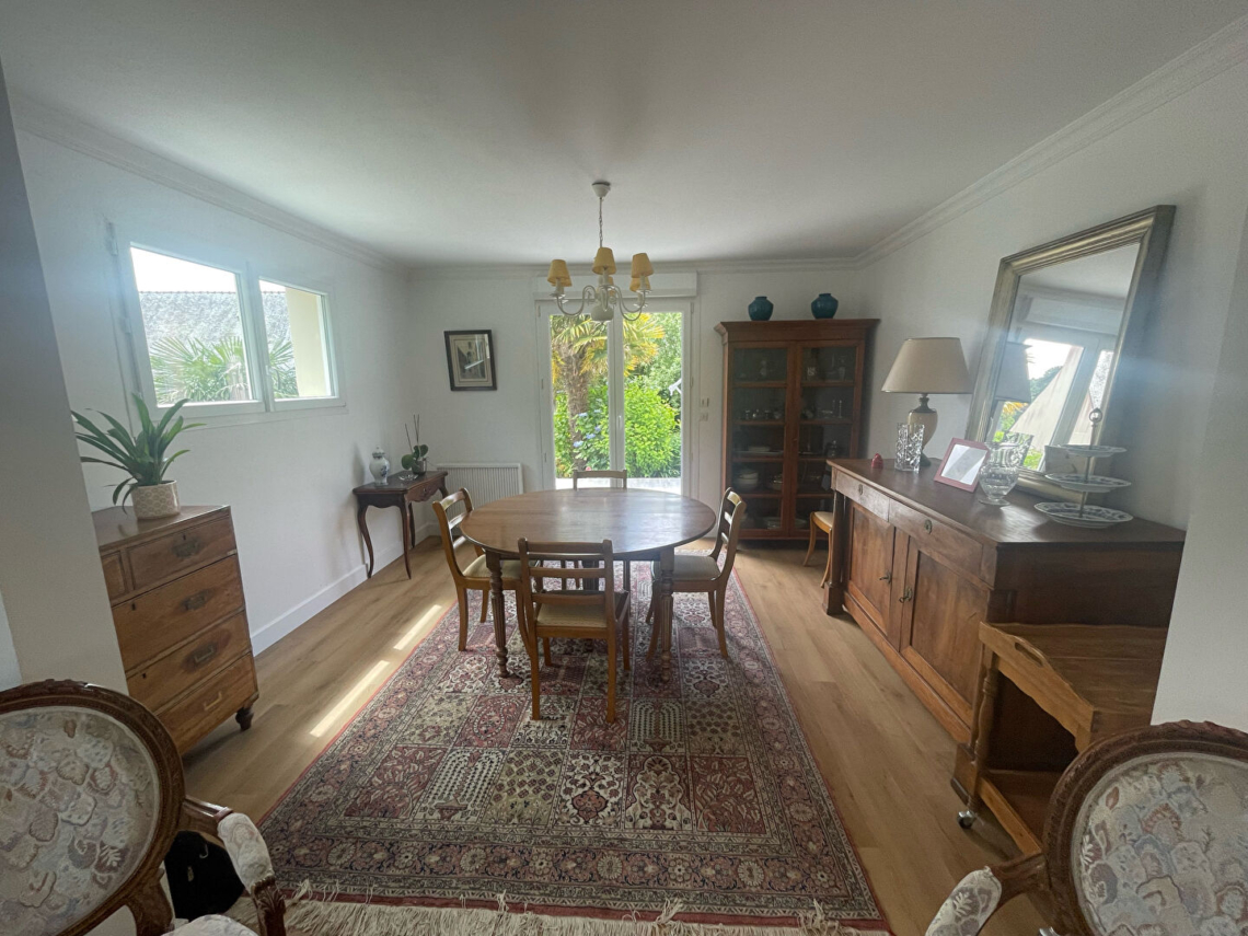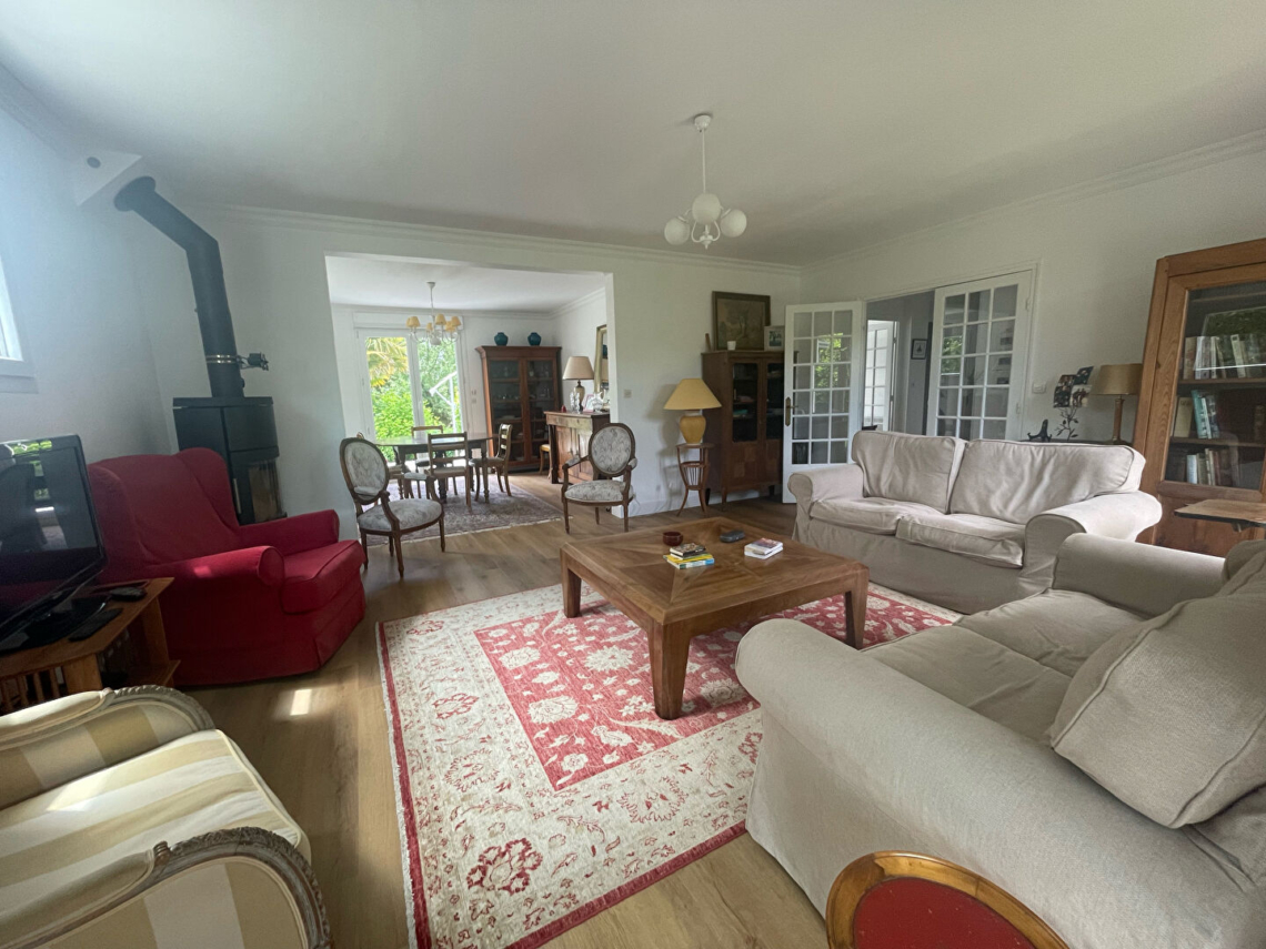 Situé dans un quartier prisé, à proximité du Moulin Blanc, cette maison T7 est en excellent état. Sur un joli jardin arboré de 800m², son rez-de-chaussée se compose d’un grand salon-séjour, agrémenté d’un poêle à bois, lumineux donnant sur la terrasse et la véranda, d’une cuisine aménagée équipée neuve, d’une chambre et d’une salle d’eau. A l’étage, le palier dessert 4 chambres, une lingerie et la salle de bains. Pour plus de rangements, un garage, un cabanon de jardin et une cave sont à votre disposition. (3.10 % honoraires TTC à la charge de l’acquéreur.)