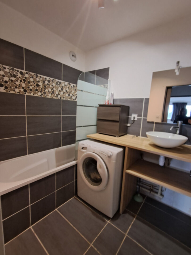 L’appartement comporte une entrée donnant sur un salon séjour avec une ouverture sur le balcon, une cuisine aménagée et équipée (four, plaques, hotte, frigo, lave-vaisselle), un dégagement avec placards, 3 chambres dont une avec un accès au balcon., une salle de bains avec machine à laver.