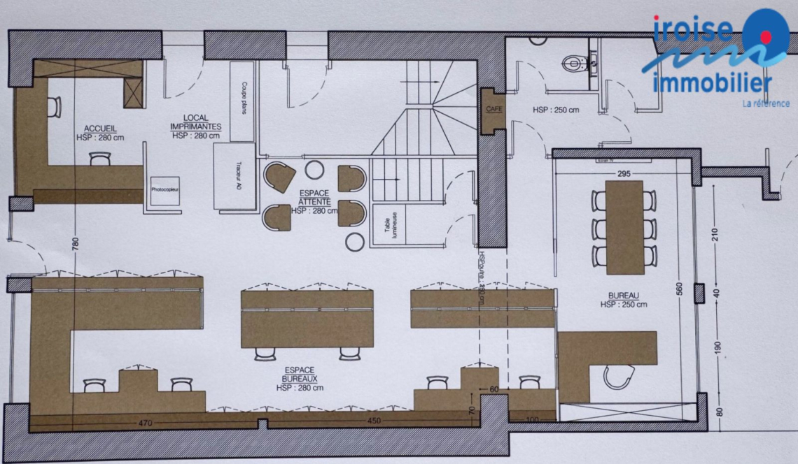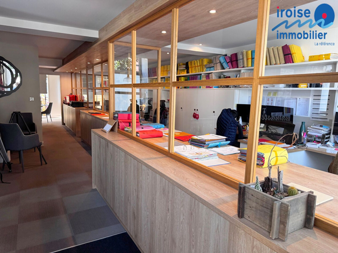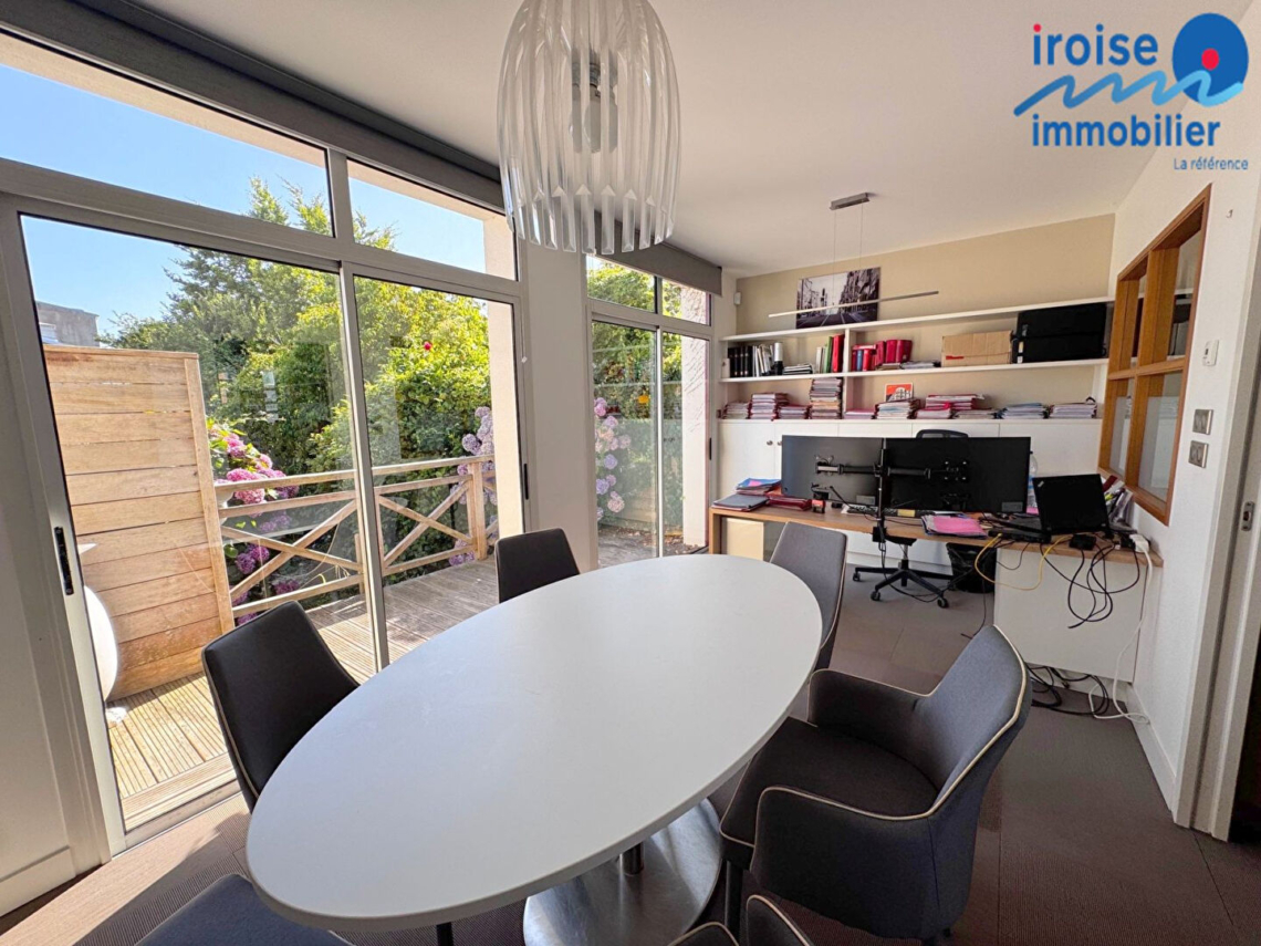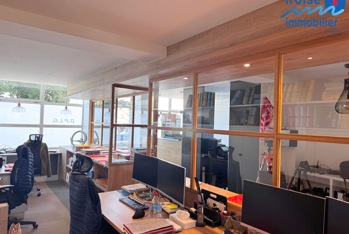 Brest quatre moulins, bureaux entièrement rénovés en 2019 avec jardin . Ces locaux à usage de bureaux offrent une belle visibilité sur rue; ils se composent : d’un hall d’entrée avec espace accueil , d’une grande pièce esprit coworking, d’un autre grand bureau avec coin réunion et donnant accès direct sur balcon; espace toilettes; vaste cave pour les archives, mais aussi dépendances servant d’archives à ce jour et donnant sur le jardin qui aux beaux jours vous permettra un moment de détente. Stationnement aisé. Aucune parties communes avec la copropriété donc absence de charges. (6.13 % honoraires TTC à la charge de l’acquéreur.)