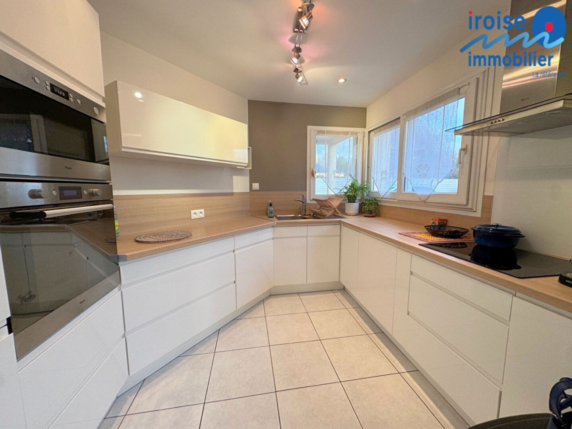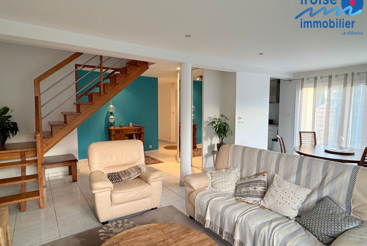 GOUESNOU, dans quartier résidentiel, jolie maison de 2002 sur terrain clos de 625 m² . Elle se compose d’un rez-de chaussée comprenant : hall d’entrée ouvrant directement sur un salon séjour de plus de 35 m² , d’une cuisine aménagée et équipée semi-ouverte, d’une chambre avec salle d’eau privative, d’un wc, d’un garage de 18 m², d’une buanderie; à l’étage : vaste mezzanine : idéal pour un bureau ou espace de jeu pour les enfants, de 3 chambres dont une chambre de 27 m² au sol . Superbe jardin paysagé avec sa vaste terrasse vous permettant de préserver votre intimité. Sa situation géographique est idéale : 5 km de l’aéroport, proche toutes commodités et transports. idéal famille avec enfants (3.29 % honoraires TTC à la charge de l’acquéreur.)