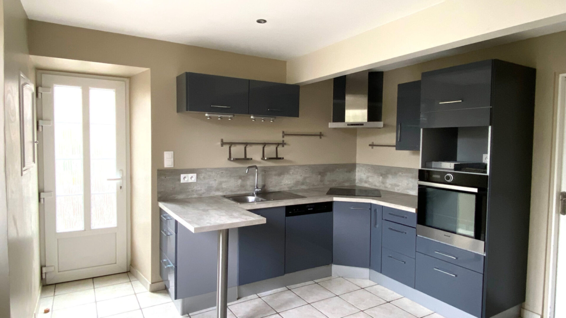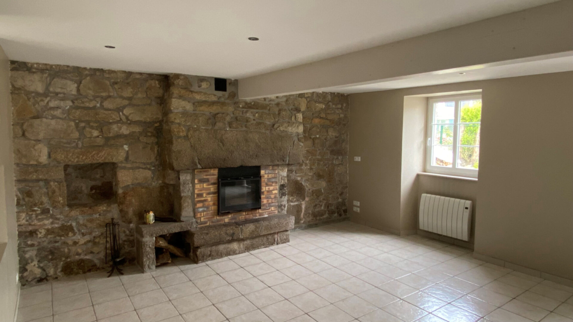 LANILDUT – Maison de ville rénovée comprenant une cuisine aménagée et équipée (four, plaques, hotte, lave-vaisselle) , un cellier, un séjour avec cheminée, un wc, à l’étage, dégagement , 3 chambres, bureau, et une salle d’eau avec wc. Un extérieur clos et un garage (accès pour 2 roues) . Environnement calme, proximité mer et commerces. Disponible le 23 Mars