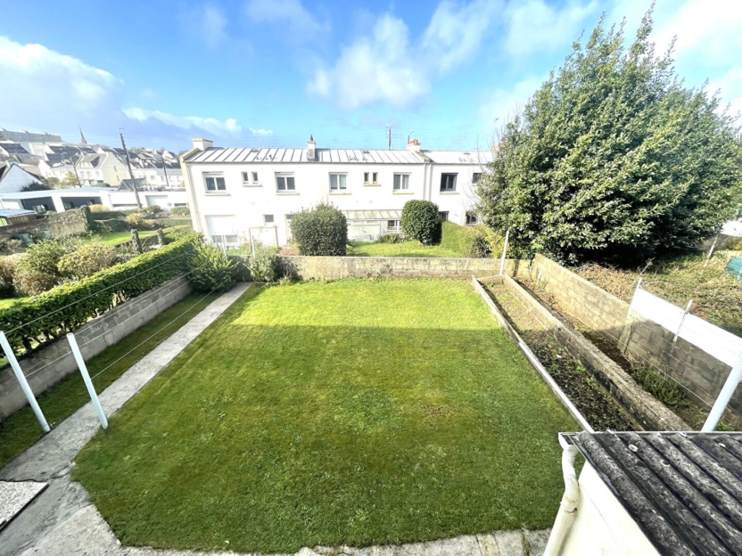 A proximité des écoles et du parc de Kérallan, cette maison T5 de 1967 est saine et bien entretenue. Elevée sur un sous-sol enterré, son rez-de-chaussée se compose d’un salon-séjour exposé Ouest, d’une cuisine indépendante, d’un bureau, d’un wc et d’un espace buanderie. A l’étage, le palier dessert 4 chambres de bonne taille et la salle d’au avec wc. Pour plus de rangements, vous disposerez d’un garage d’environ 30m². Toiture et isolation des combles de 2011. Chauffage au Gaz et fenêtres en PVC double vitrage. (5.56 % honoraires TTC à la charge de l’acquéreur.)