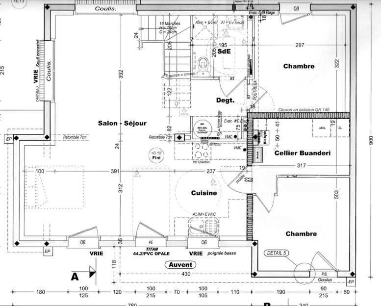 – Au rez-de-chaussée : Une pièce de vie lumineuse de 38 m², exposée sud-ouest, avec cuisine ouverte aménagée et équipée (four, plaques, hotte), Un dégagement, Une salle d’eau avec WC,