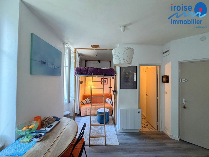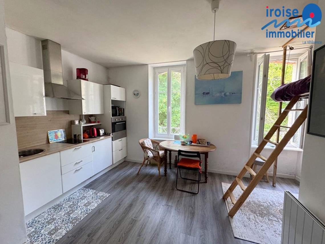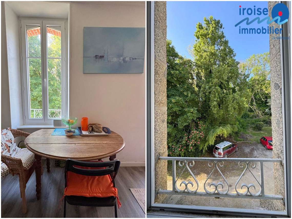 LOCMARIA- PLOUZANE, à 400 m de la plage de Portez, studio situé dans un Chateau rénové de 1870 avec son vaste parc privatif aménagé de 7470 m². De ce parc vous aurez accès direct à la plage par un petit chemin. L”appartement situé au 1er étage se compose : d’une pièce de vie avec cuisine ouverte aménagée et équipée , d’une salle d’eau, d’un wc. Emplacement exceptionnel . idéal pied à terre pour résidence secondaire. EXCLUSIVITE IROISE IMMOBILIER (7.54 % honoraires TTC à la charge de l’acquéreur.)