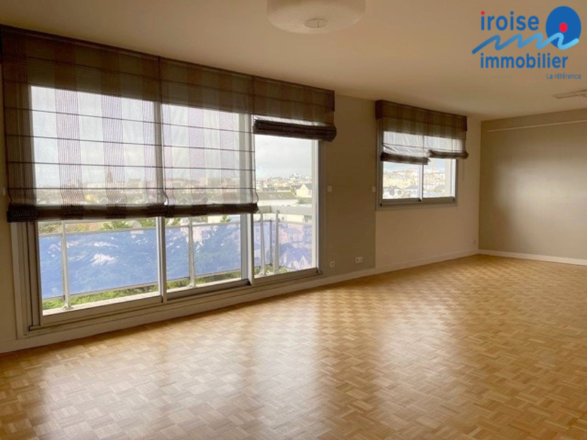 BREST LE GUELMEUR, superbe appartement T5 avec vue sur mer au 7ème étage dans résidence de bon standing avec ascenseur et espaces verts. Cet appartement entièrement rénové se compose : d’un hall d’entrée, d’un vaste salon séjour de 40.9 m² exposé sud-ouest avec balcon vue rade, de 2 chambres, possibilité 3, d’un dégagement avec placard aménagé, d’une cuisine indépendante aménagée et équipée (four, plaques, hotte, frigo) avec cellier fermé, d’une salle de bains, d’un wc séparé. Garage privatif dans la résidence. Bien rare sur le marché. Coup de coeur assuré.