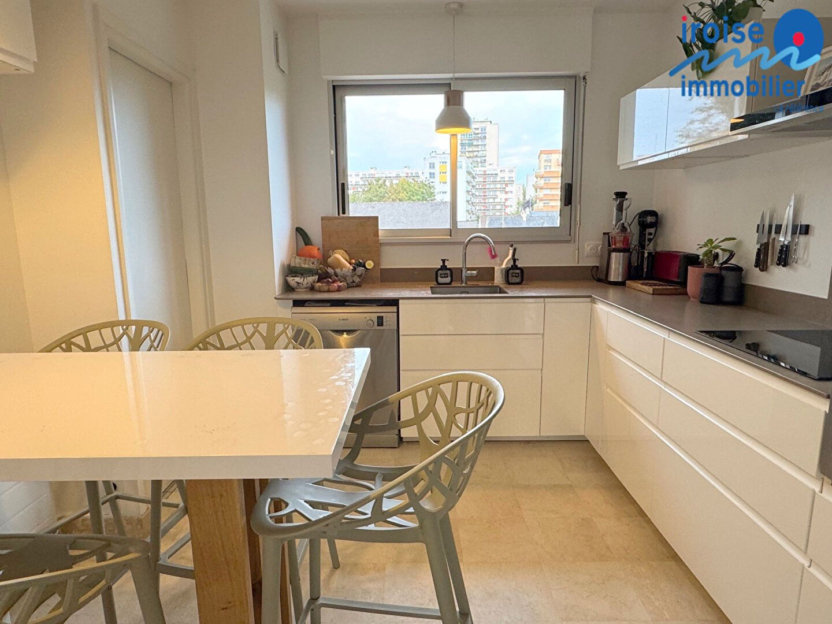 Brest proche centre ville, nichée dans une petite copropriété de qualité de 10 appartements avec ascenseur, entourée de verdure, proche commerces et tramway, vaste appartement t6 de 134 m² + 22.51 m² de balcons . Cet appartement se compose : d’un hall d’entrée, d’un salon séjour avec balcon, d’une cuisine indépendante aménagée et équipée, d’un salon séjour de 39 m², d’un cellier, de 4 chambres avec balcon dont 1 avec salle d’eau privative, d’une salle de bains, coin lecture dans le dégagement, d’un wc. Garage de 15..50 m² au rez de chaussée de l’immeuble avec accès direct dans la résidence ainsi qu’une cave. Place de parking privative extérieure également. Nombreux rangements. Cet appartement a été rénové en 2020. Rare sur le marché. Exclusivité Iroise (4.06 % honoraires TTC à la charge de l’acquéreur.)
